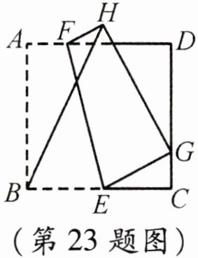 23. 如图,在边长为 2 的正方形 $ A B C D $ 中,点 $ E $,$ F $ 分别是边 $ B C $,$ A D $ 上的点,连接 $ E F $,将四边形 $ A B E F $ 沿 $ E F $ 折叠,点 $ B $ 的对应点 $ G $ 恰好落在 $ C D $ 边上,点 $ A $ 的对应点为 $ H $,连接 $ B H $,则 $ B H + E F $ 的最小值是