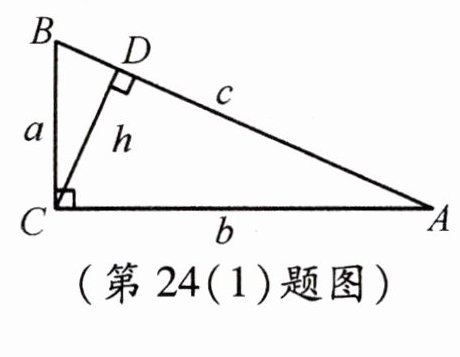 (1) 如图,在 $ \mathrm { Rt } \triangle A B C $ 中,$ \angle A C B = 90 ^ { \circ } $,$ \angle A $,$ \angle B $,$ \angle A C B $ 所对的边分别为 $ a $,$ b $,$ c $,且满足 $ a ^ { 2 } + b ^ { 2 } - 10 a - 24 b + 169 = 0 $,求 $ \mathrm { Rt } \triangle A B C $ 的斜边上的高 $ h $ 的值为