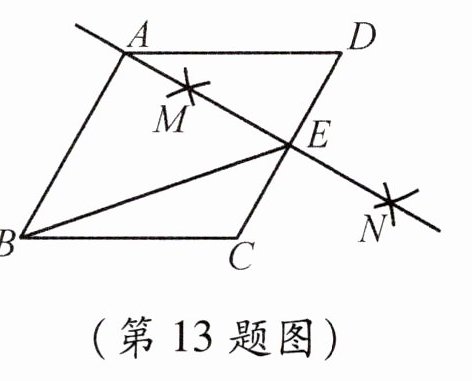 13. 如图,在菱形$ABCD$中,按如下步骤作图: