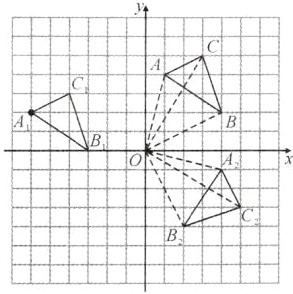(2)将$\triangle ABC绕点O顺时针旋转90^{\circ}$,请画出旋转后得到的$\triangle A_{2}B_{2}C_{2}$;
