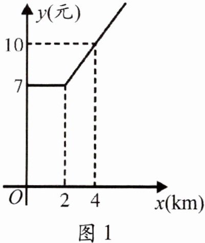 6. 某地出租车计费方法如图1所示,$x$(km)表示行驶里程,$y$(元)表示车费,请根据图象解答下列问题: