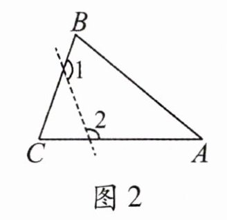 3. 如图 2,在 $ △ABC $中,$ ∠C = 70^{\circ} $,沿图中虚线截去 $ ∠C $,则 $ ∠1 + ∠2 = $(