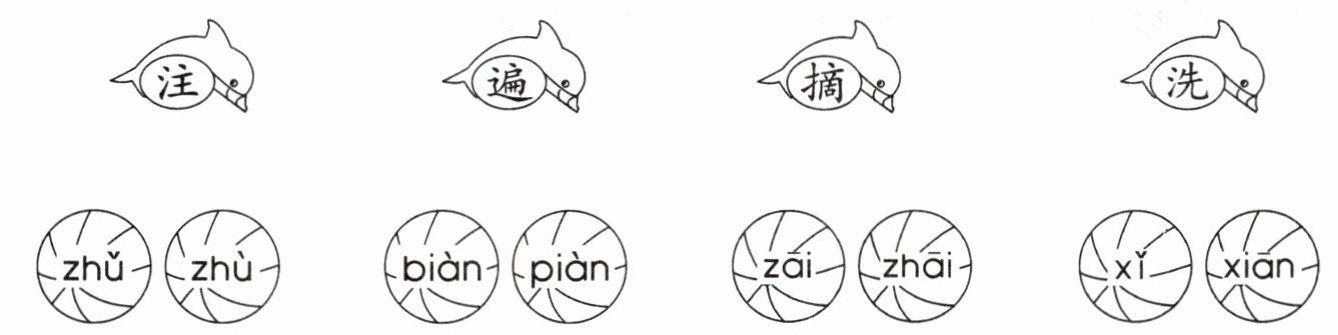 注——zhù 遍——biàn 摘——zhāi 洗——xǐ