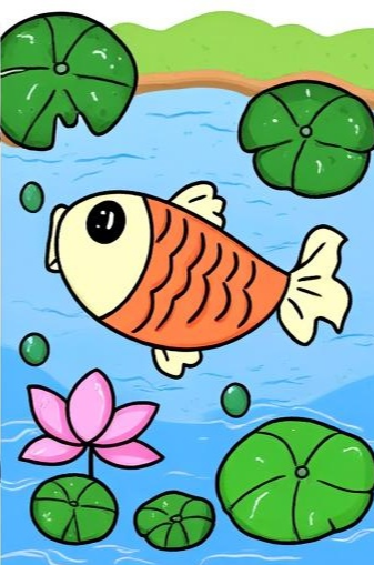 小鱼儿说:“荷叶是我的凉伞。”小鱼儿在荷叶下笑嘻嘻地游来游去,捧起一朵朵很美很美的水花。