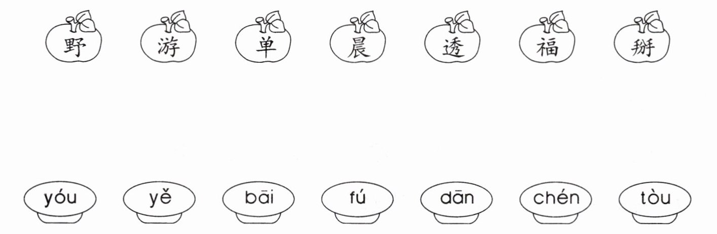 野——yě 游——yóu 单——dān 晨——chén 透——tòu 福——fú 掰——bāi