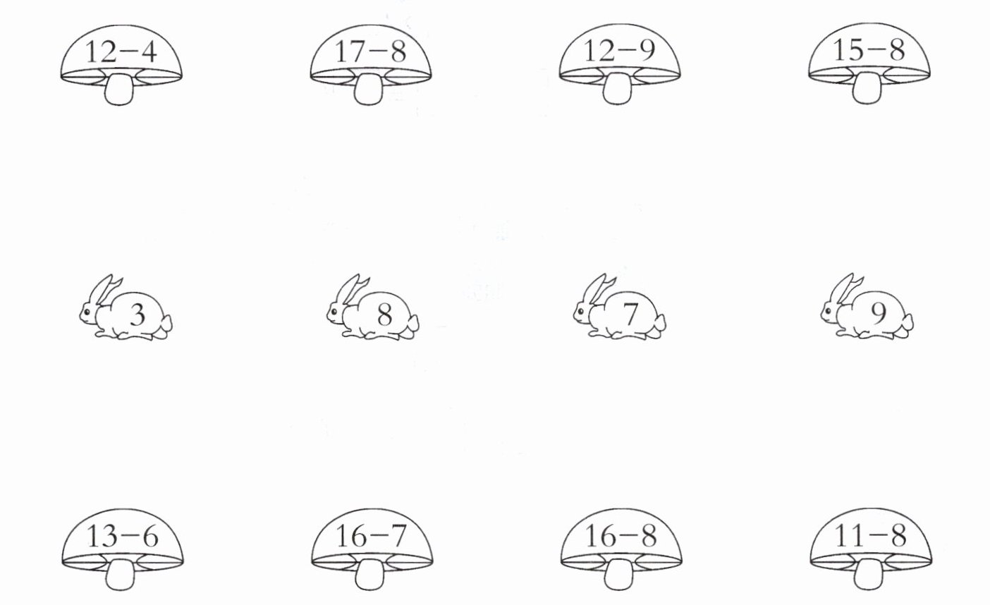 $12 - 4$结果为$8$,与数字$8$的兔子连线;