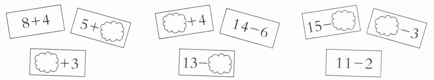 二、下面每组算式的得数相同,请填出被遮住的数。
