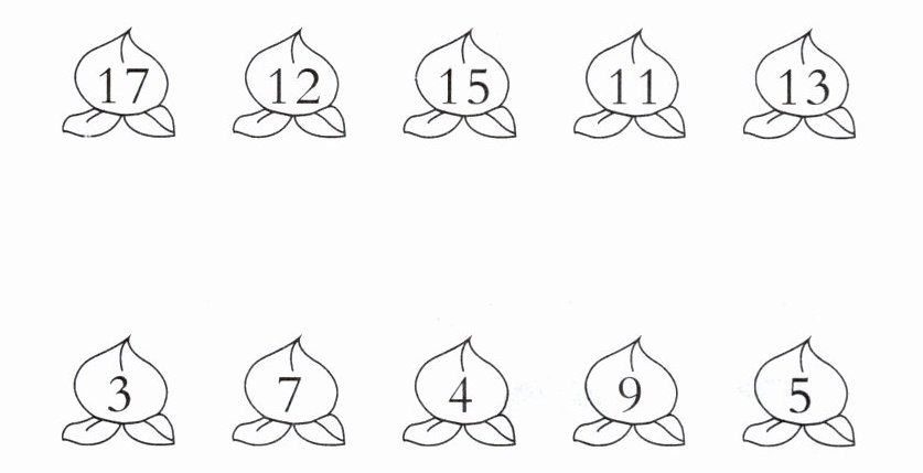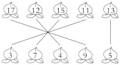 三、小猴可以选哪两个桃子?算一算,连一连。