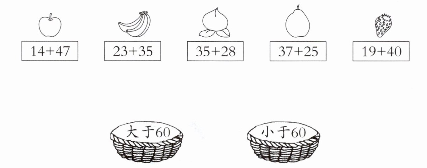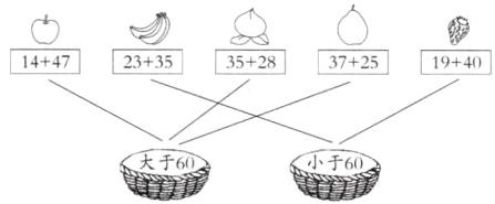 二、bǎ shuǐ guǒ fàng rù xiāng yìng de kuāng zhōng lián yi lián