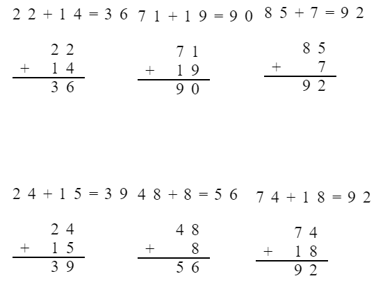 $24+15=$ $48+8=$ $74+18=$