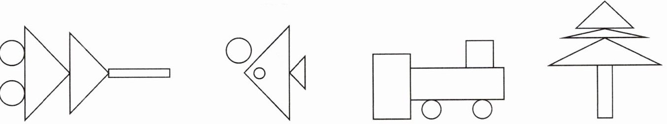 三、在下面分别画出一个长方形、一个正方形和一个三角形。