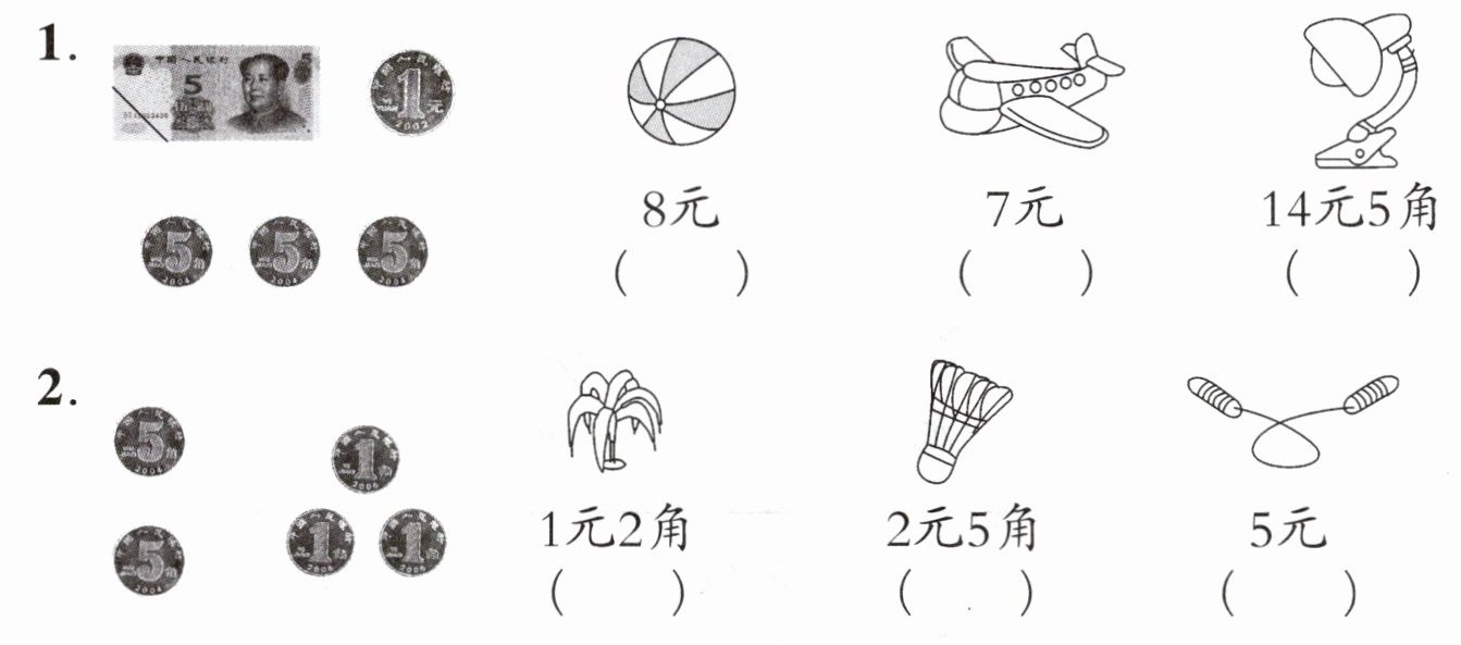 五、给出的钱能买什么?在能买的物品下面的( )lǐ huà里画“√”。