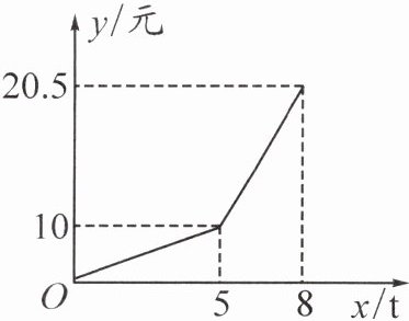 超过 $5t$ 时:$(20.5 - 10)÷ 3 = 3.5$(元);