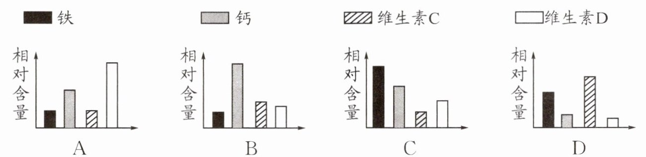 1. 在下列4种营养成分不同的食品中,若某同学平时以其中的一种食品为主食,则最不易患坏血病的是 (