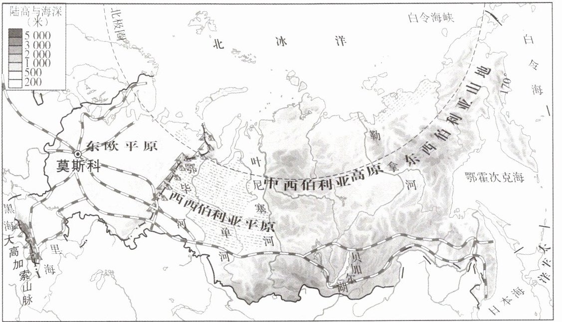 D. 北极圈穿过俄罗斯北部