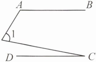 16. 如图,$AB // DC$,$∠A = 120^{\circ}$。若$∠C = 10^{\circ}$,则$∠1 = $______