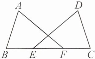 19. 如图,点$E$,$F在线段BC$上,$AB = DC且BE = CF$,添加一个条件使得$△ABF ≌ △DCE$,则这个条件可以是