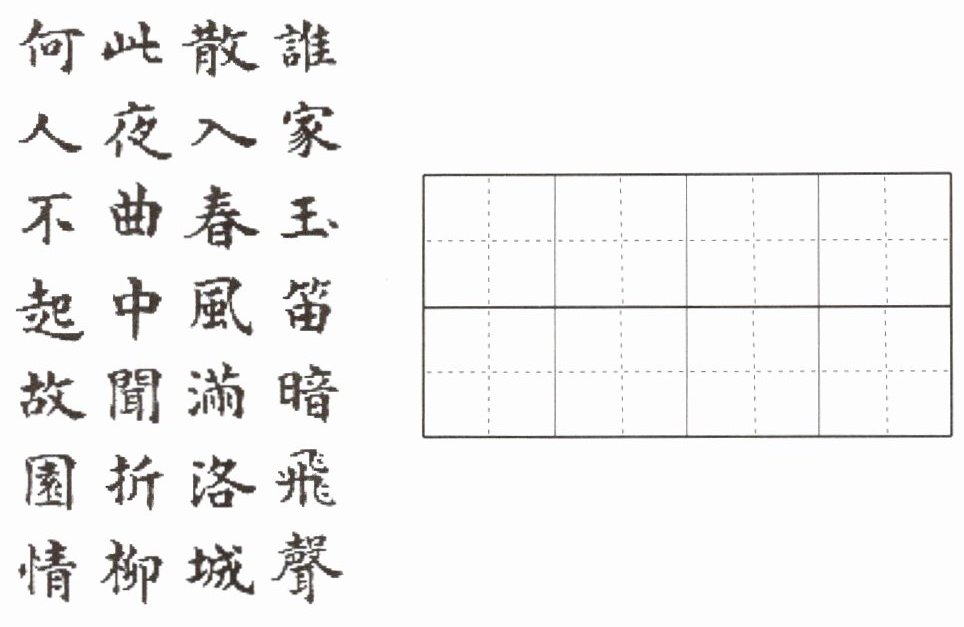 6. 仔细观察下面的书法作品,从中挑选八个不同的简体汉字,用正楷临写在田字格内。