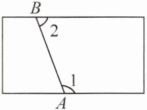 3. 小星有一块上、下边缘相互平行的小黑板,他在两个边缘之间画了一条线段 $ AB $,如图所示,当 $ \angle 1 = 110^{\circ} $ 时,$ \angle 2 $ 的度数是 (