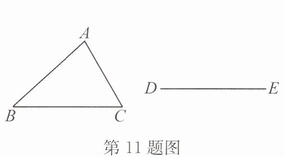 11. 如图,有线段 $ DE $ 与不等边三角形 $ ABC $,已知 $ DE = BC $,现以 $ D $,$ E $ 为两个顶点作位置不同的三角形,使所作的三角形与 $ \triangle ABC $ 全等,这样的三角形最多可以画出 (