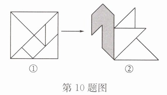 10. 小星在学习了七巧板一节内容后,用边长为 1 的正方形纸板制成一副如图①所示的七巧板,并将它拼成如图②所示的“小天鹅”图案,其中阴影部分的面积是 (