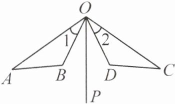 22. 如图,$ OP $ 是 $ \angle AOC $ 和 $ \angle BOD $ 的角平分线,$ OA = OC $,$ OB = OD $。