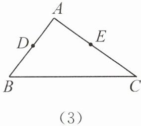 如图(3),在 $ \triangle ABC $ 中,$ D $,$ E $ 分别是 $ AB $,$ AC $ 边的中点,请你在 $ BC $ 边上确定一点 $ P $,使 $ \triangle PDE $ 的周长最小.
