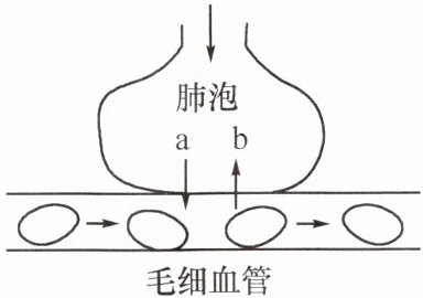 17. 如图是肺泡与血液之间的气体交换示意图,其中a、b表示气体。下列有关叙述不正确的是 (