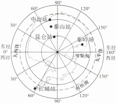 2024 年 2 月 7 日,我国在南极罗斯海区域的第五座南极科学考察站——秦岭站(163°42'E,74°56'S)正式开站,它是我国首个面向太平洋扇区的考察站,所在的罗斯海区域是关系南极地区海冰生成的关键区以及生物活性较强的区域。秦岭站建成后,将提升我国的海洋科考研究能力,具有重要的科考价值。同时,该站也是我国继长城站、中山站后的第三个南极常年考察站,全年可进行科考,而昆仑站与泰山站仅在当地夏季进行科考工作,属于夏季站。读图,完成 13~16 题。