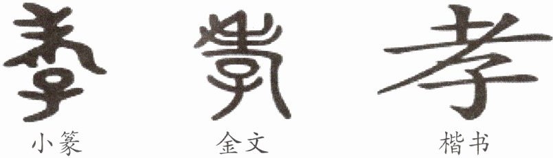 7. 从“孝”字的字形演变中,推测“孝”的字义。