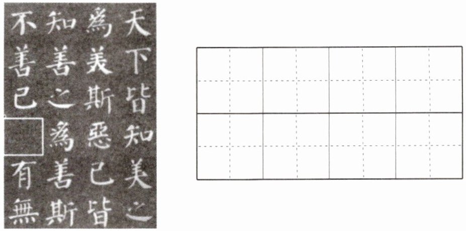 10. 请仔细观察下面的书法作品,从中挑选八个不同的简体汉字,用正楷临写在田字格内。