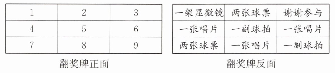(3)如得到“一副球拍”或得到“两张球票”均可。