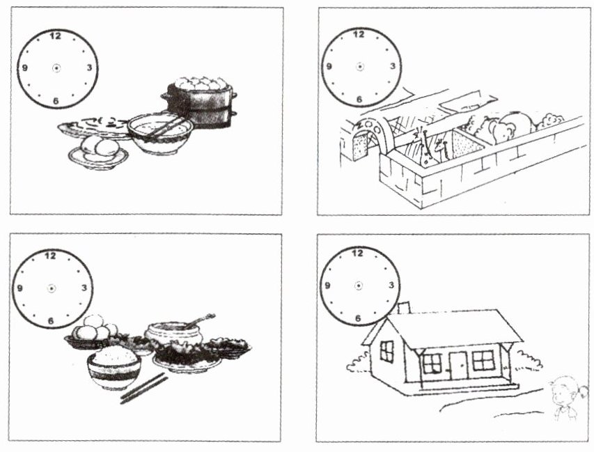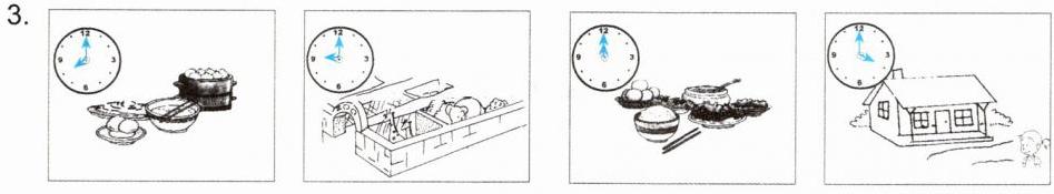 3. Read and draw. (你能根据下面的小短文,在相应的钟面上画出时间吗?)