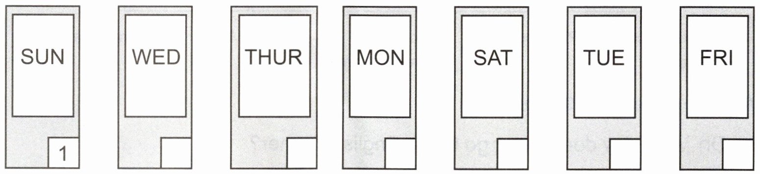 2. Guess and number.(猜一猜下面的缩写词表示一个星期的哪一天,并给它们排序。)