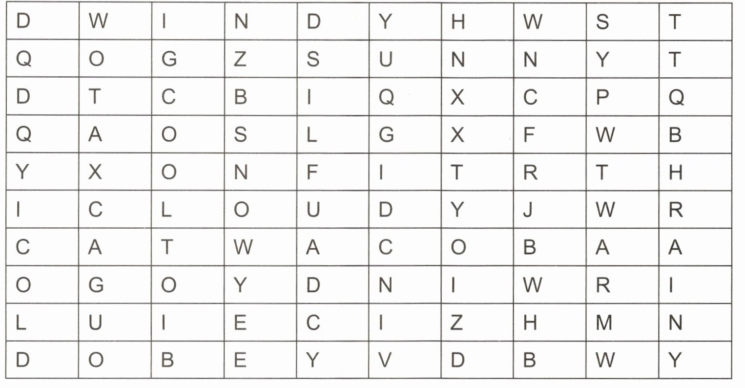 1. Look and circle the weather words. (看一看,圈出相应的天气类单词。)