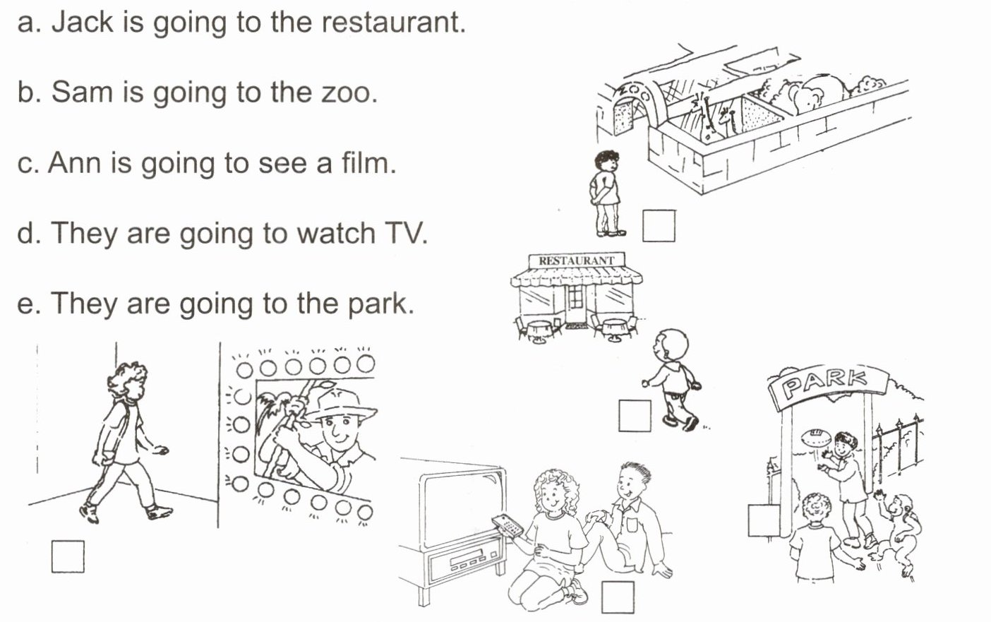 2. Read and match. (读一读,将下列句子与相应的图片匹配,把序号填到方框中。)