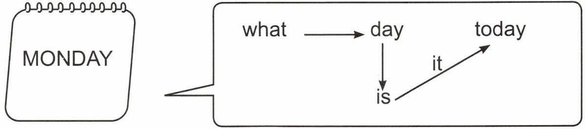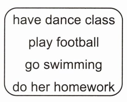 a. What day is it today? b. What does she do on Saturday?