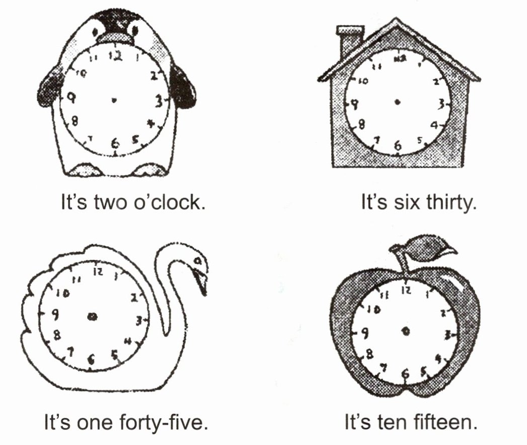 1. Read and draw. (你能根据下面的句子在钟面上画出时间吗?)