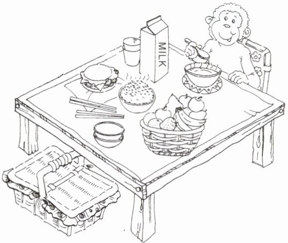 2. 读一读,你能选出Mocky桌上有的食物吗?(勾一勾)