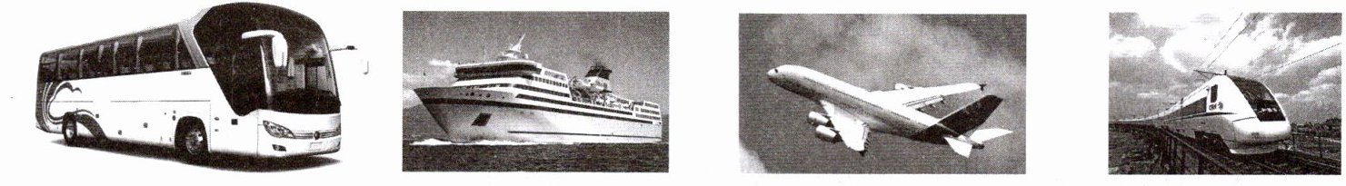 【解析】:本题主要考查对不同交通工具特点的理解与比较,需要从速度、运量、灵活性、受自然条件影响等方面分析大巴车、轮船、飞机、高铁这些交通工具的优缺点。