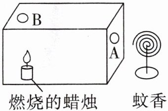 2. 如图所示,模拟“风”的实验中,盒外蚊香的烟会( )。
