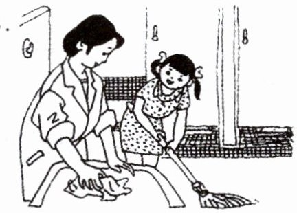 2. 含义:图中小女孩和母亲一起打扫卫生,小女孩拿着扫帚帮忙,体现了孩子帮家长做家务的场景。道理:我们要主动帮家长分担家务,培养劳动习惯。