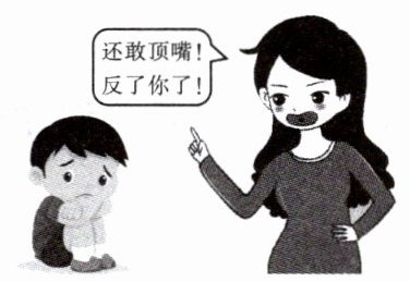 1. 含义:图中母亲对孩子大声呵斥,孩子显得委屈害怕,体现了家长对孩子采用粗暴的教育方式。道理:家长应与孩子耐心沟通,采用温和的方式教育孩子。