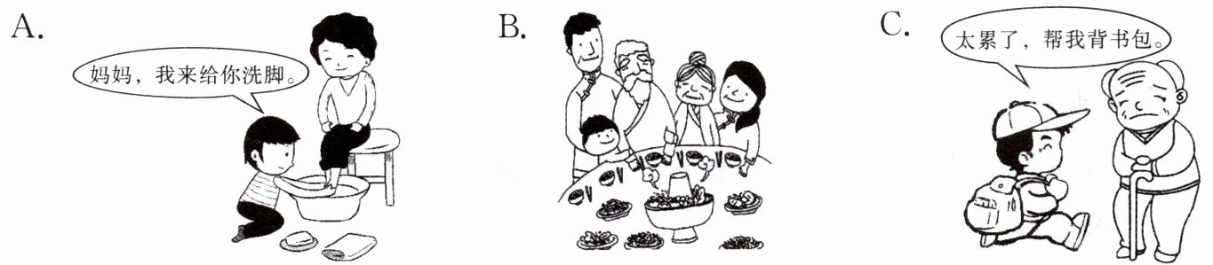 4. 下列图片中不能反映良好家风的是( )。