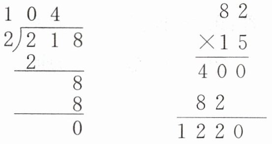 【解析】:左图为除法竖式计算,被除数是218,除数是2。计算过程中十位上的1除以2不够商1,应商0占位,而原竖式中直接用个位上的8去除以2,导致商的十位数字缺失,正确商应为109。