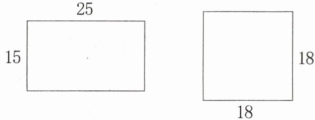 【解析】:第一个图形是长方形,长方形面积=长×宽,长为25厘米,宽为15厘米,面积为25×15=375平方厘米;第二个图形是正方形,正方形面积=边长×边长,边长为18厘米,面积为18×18=324平方厘米。