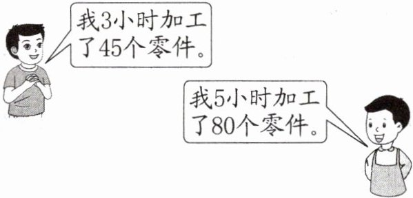 左边的人:3小时加工45个,每小时加工 $45÷3 = 15$ 个。