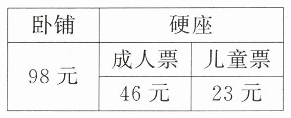 【解析】:1. 已知有2个老师(成人)和10名学生,硬座成人票46元,儿童票23元。老师买票花费为2×46元,学生买票花费为10×23元,总花费将两者相加。