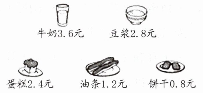 ②$2.8+0.8=3.6$(元) 豆浆和饼干。