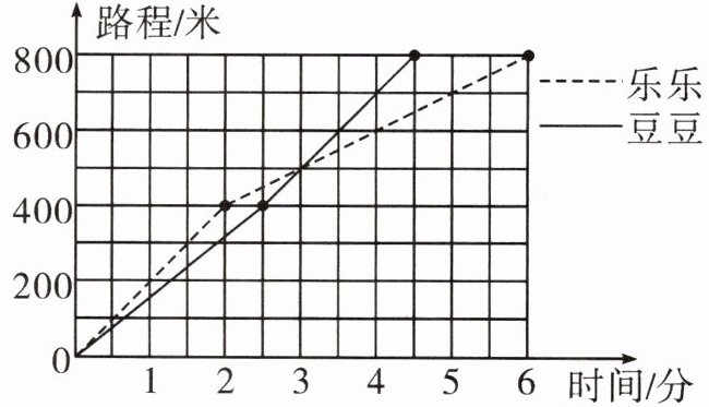 6. 右面是乐乐和豆豆800米跑步比赛的情况统计图。